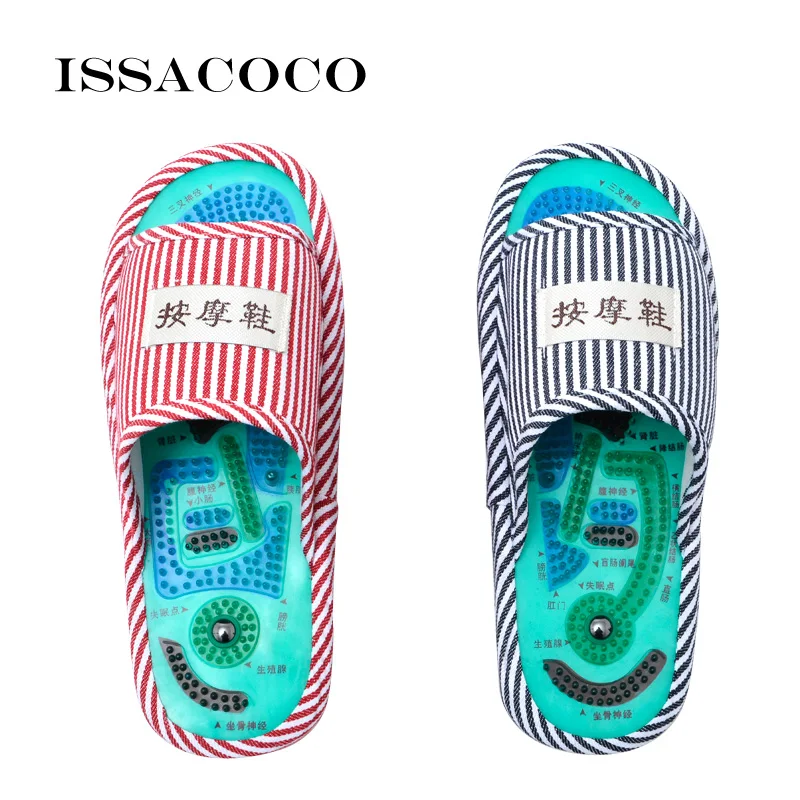 Order Chance of ISSACOCO Men Slippers Men's Blue Stripe Health Care Taichi Acupuncture Foot Massage Slippers with M