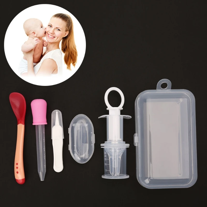 Hot deal 5pcs Newborn Baby Kids Medicine Dispenser Dropper Toothbrush Health Care Kit Medicine Feeder for ou